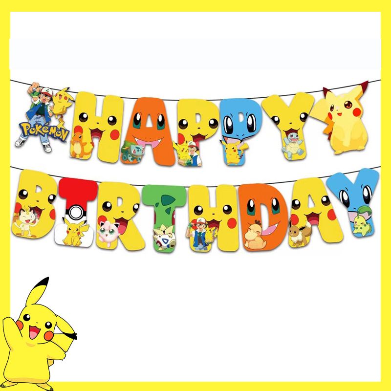Pokemon Birthday Party Decoration Pikachu Disposable Tableware Cup Napkin Plate Tablecloth Baby Shower Cake Topper Flag Balloons