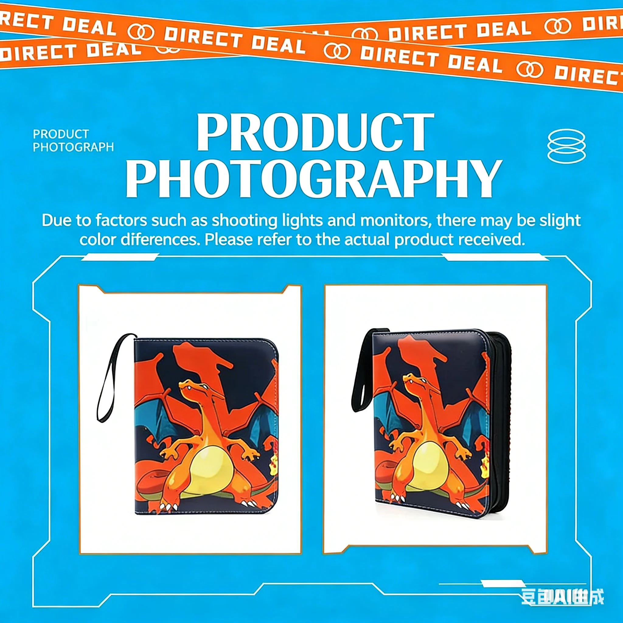 Pokemon Card Anime Figure Card Storage Bag Photo Album Collect Album Loose Leaf Pu Zipper Game King Fans Pikachu Card Pack Toys