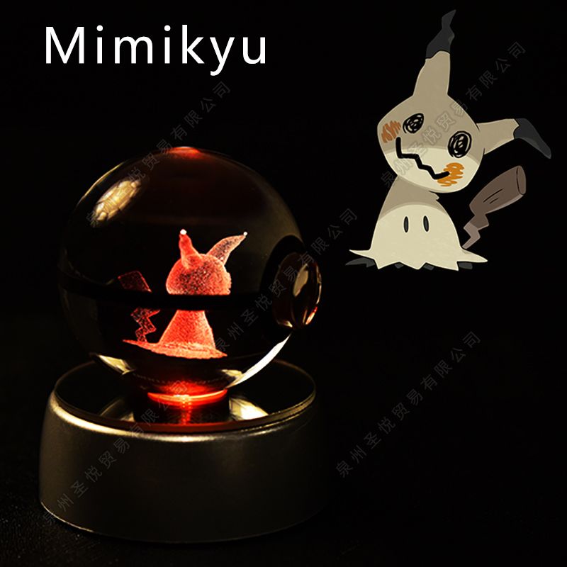 Pokemon Crystal Ball 3D Pikachu Gengar Mewtwo Night Light Lamp Pokeball 3D Glass Pokemon Crystal Ball Statue Kids Birthday Gift