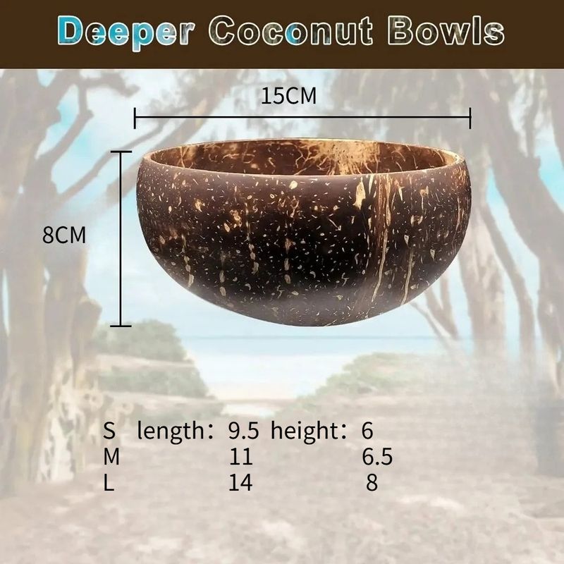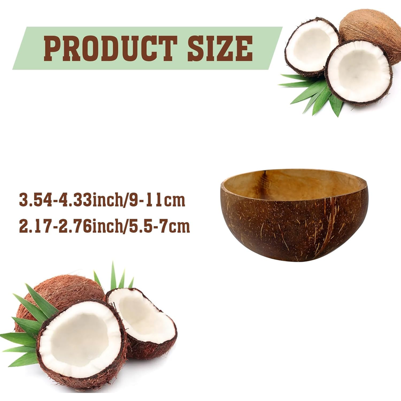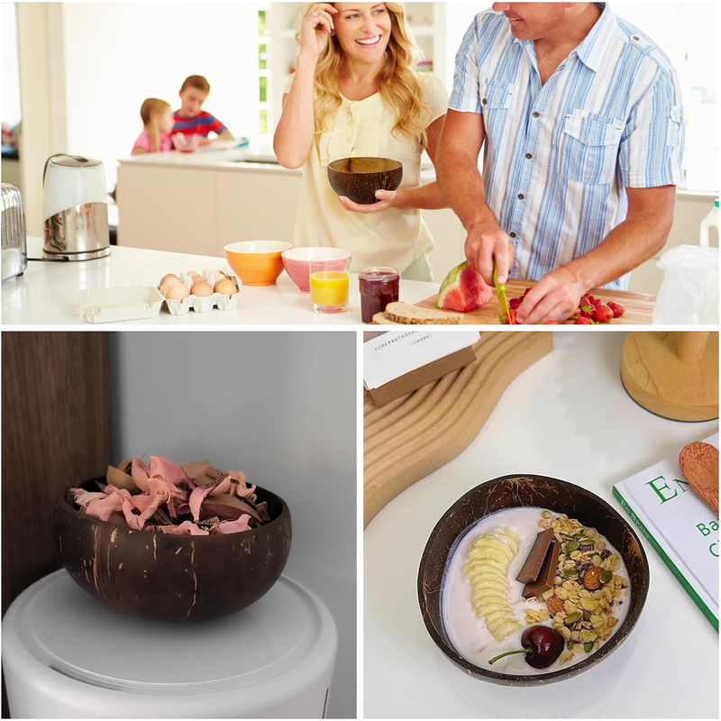 Polished Coconut Bowls and Wooden Spoon Sets Natural Coconut Salad Smoothie Bowls for Kitchen Women Gifts Decoration