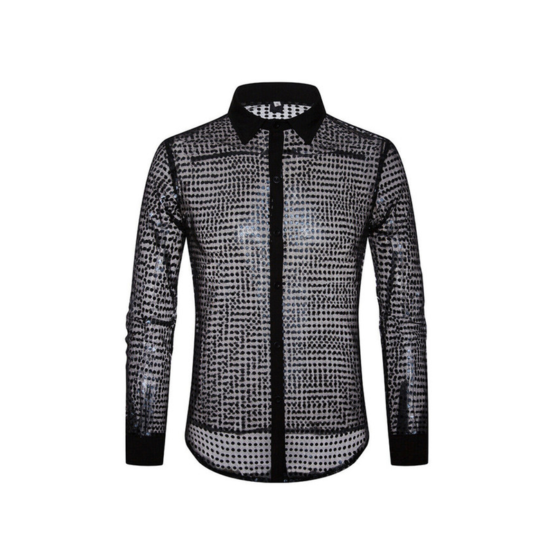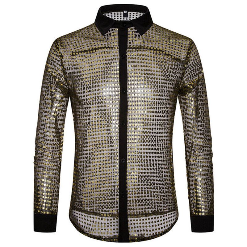 Polka Dot Scale Long Sleeve Shirt For Men Gold L
