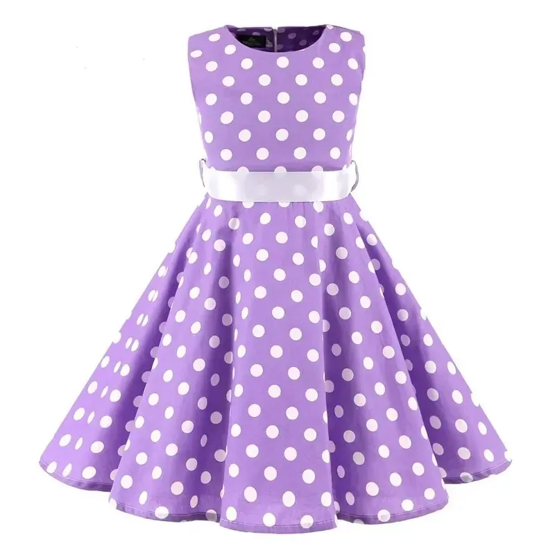 Polka Dot Vintage Kids 1950s Swing Dress Flower Floral Midi Dress Cotton Summer Dress Baby Girl