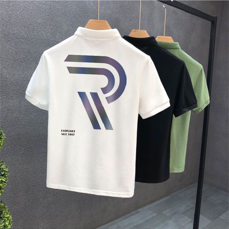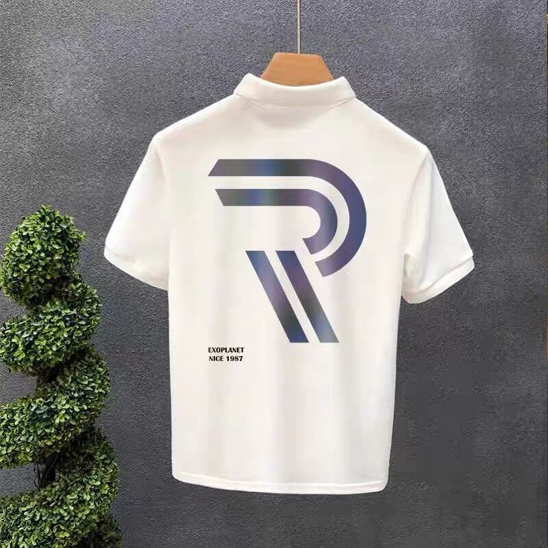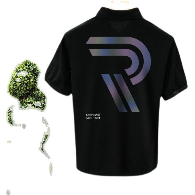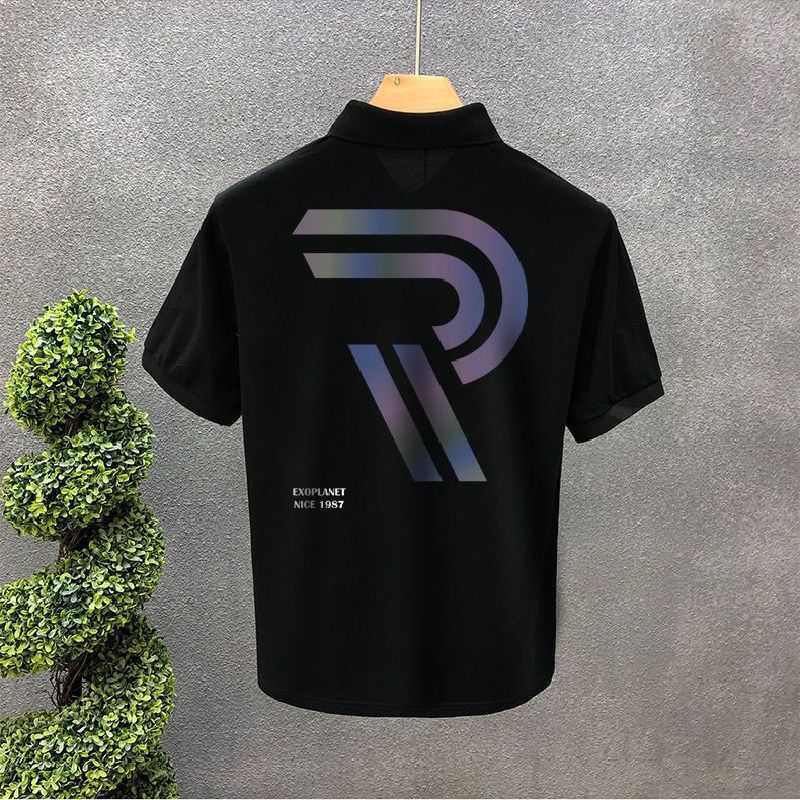 Polo Collar Short Sleeve Summer Lapels T-shirt Men Black S