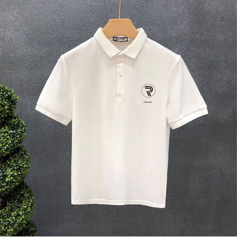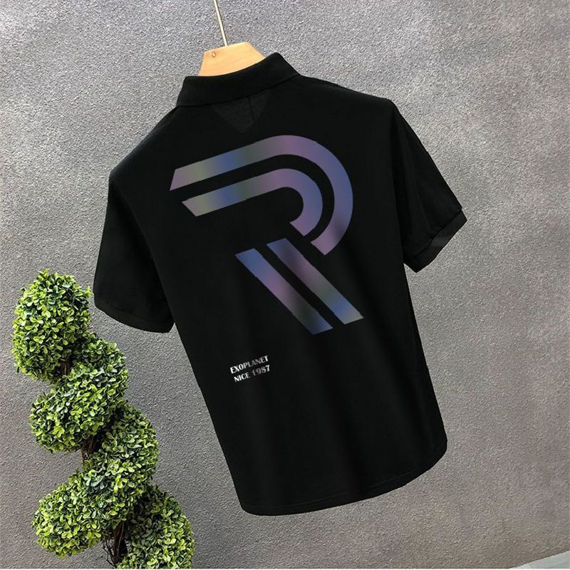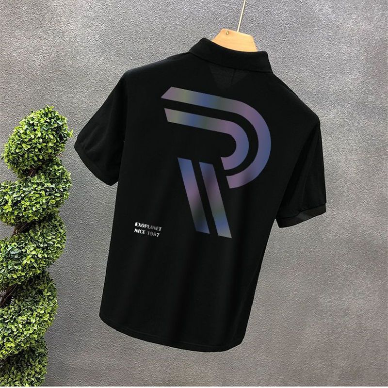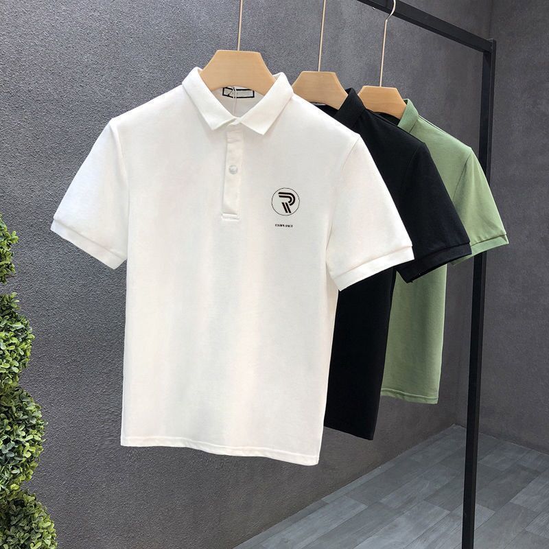 Polo Collar Short Sleeve Summer Lapels T-shirt Men Black XL