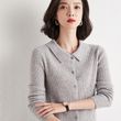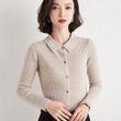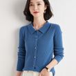 Polo Collar Slim Fit Slimming Long Sleeves Top Breasted Cardigan Apricot XL