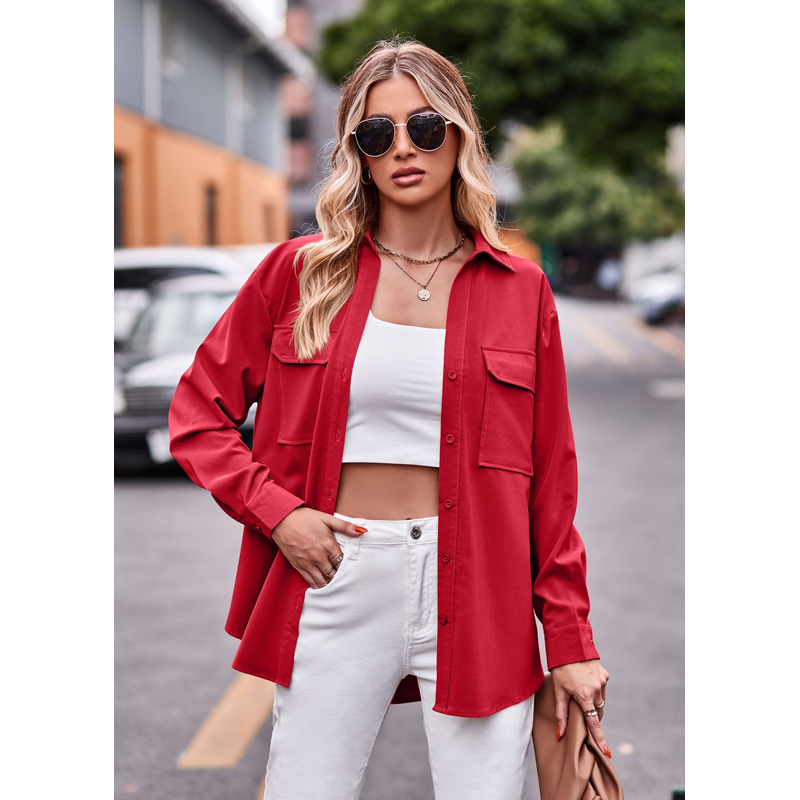 Polo Collar Solid Color Long Sleeve Coat Shirt Turmeric S
