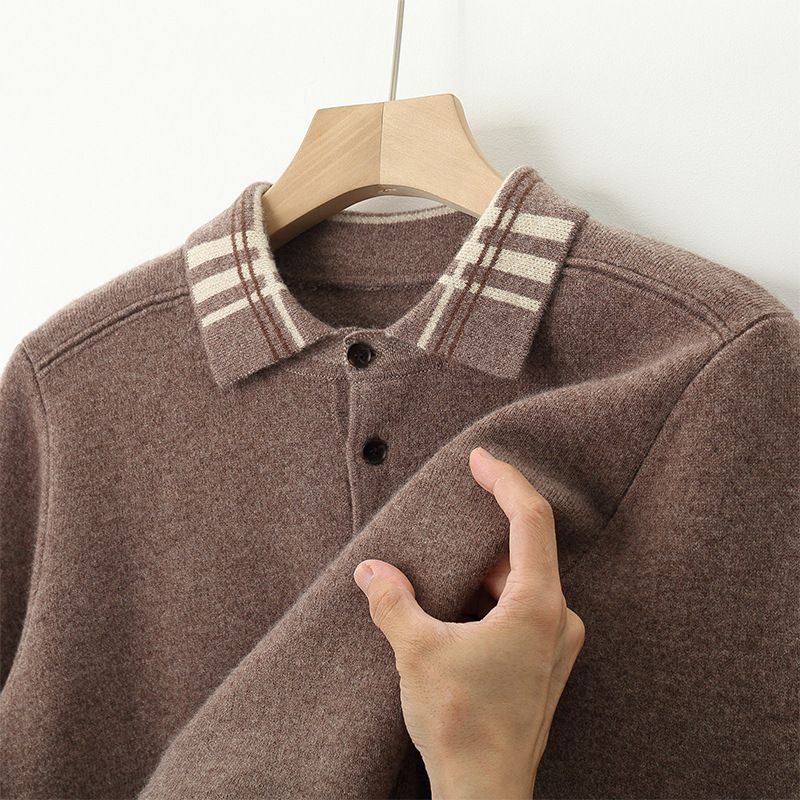 POLO Lapel Pullover Multicolor Casual Loose Cashmere Knitted Bottoming Shirt Gray L