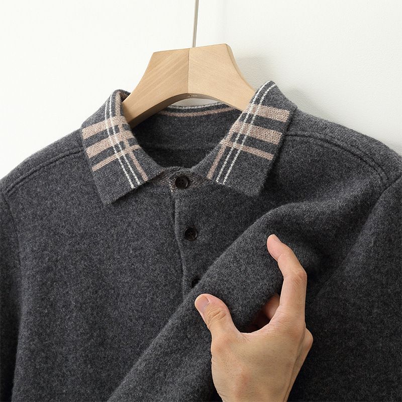 POLO Lapel Pullover Multicolor Casual Loose Cashmere Knitted Bottoming Shirt Gray M