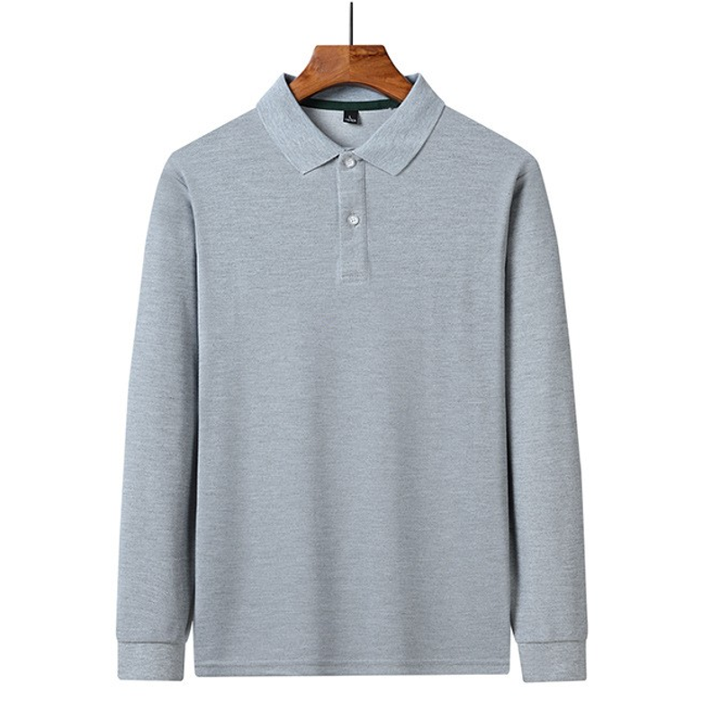 POLO Shirt Business Long-sleeved Lapel Casual Light Grey XL