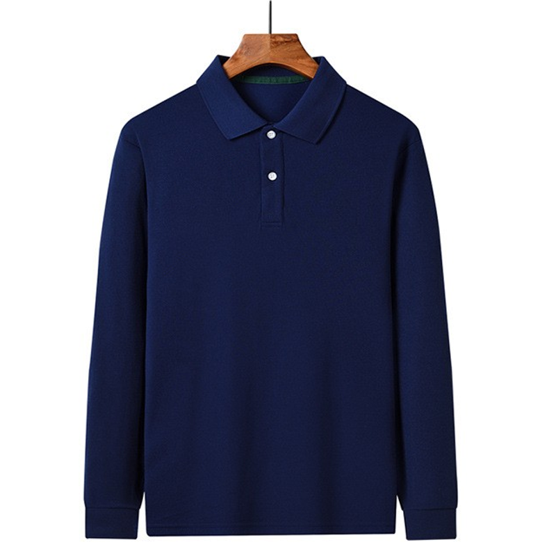 POLO Shirt Business Long-sleeved Lapel Casual Navy Blue 2XL