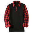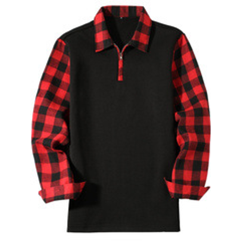 Polo Shirt Long Sleeve Plaid Lapel Casual Red L