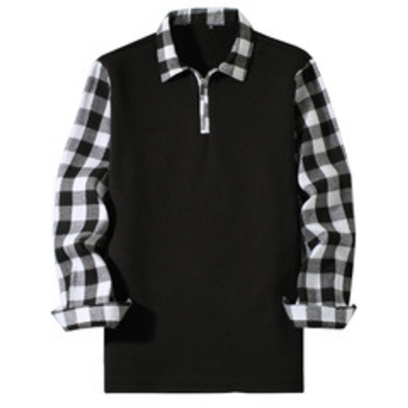 Polo Shirt Long Sleeve Plaid Lapel Casual White M