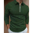 POLO Shirt Zipper Stripe Long Sleeve Men's T-shirt Top Green 2XL