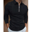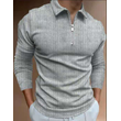POLO Shirt Zipper Stripe Long Sleeve Men's T-shirt Top Grey 2XL