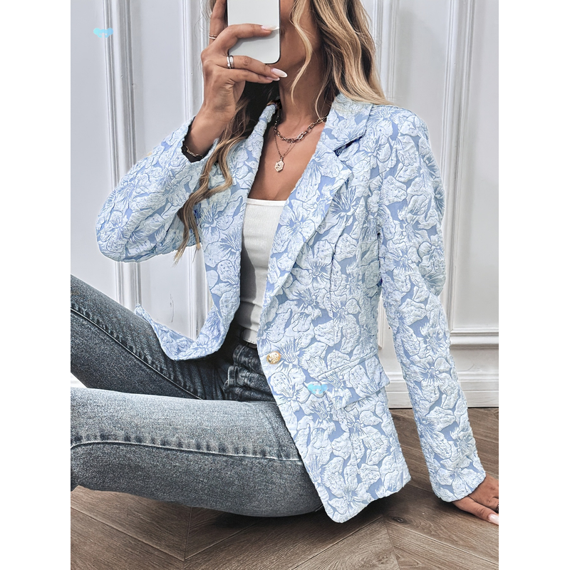 Polyester Elastane Blend Elegant Floral Long Sleeve Pink S