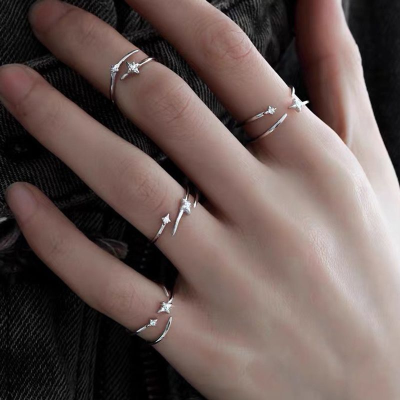 PONYKISS 925 Sterling Silver Zircon Star Line Cross Opening Rings for Women Cute Fine Jewelry Minimalist Personality Accessories