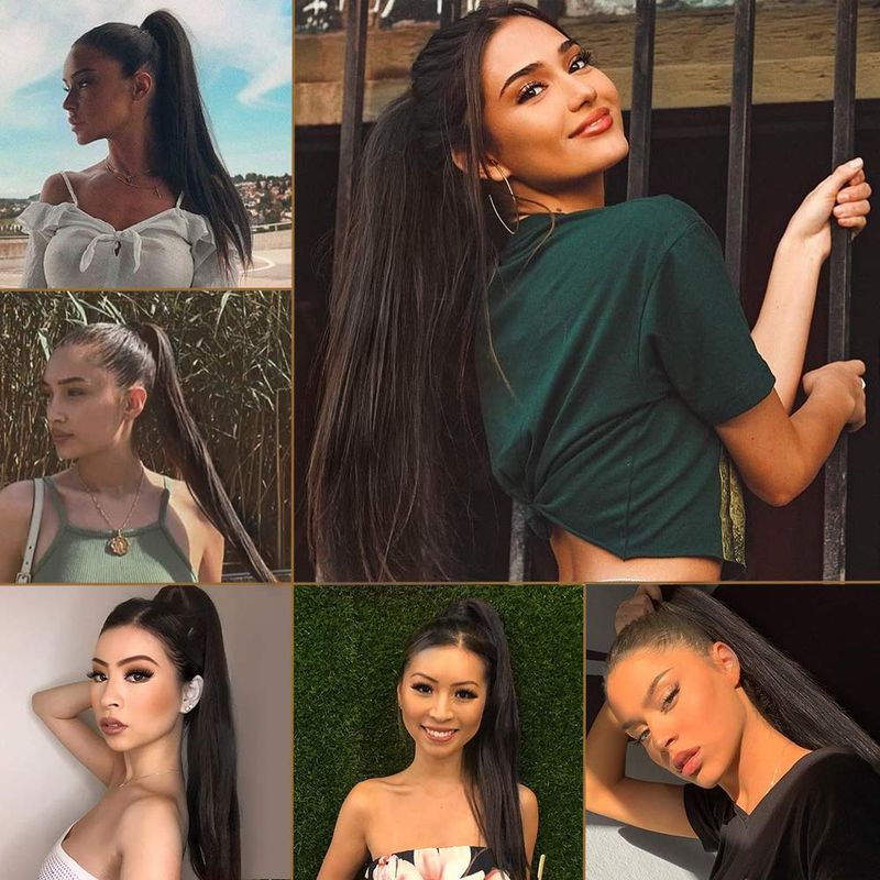 5, Suitable for daily use and party show. Perfect for adding length volume and fullness to a ponytail or a big bun, provides secure and comfortable attachment for all day wear. Contact our Customer Service whenever you have any problem about this straight ponytail wrap around product.