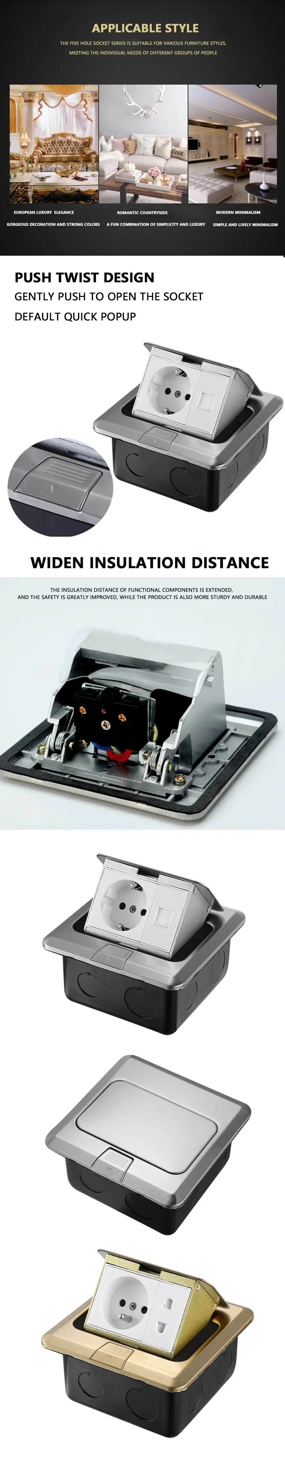 Pop Up Floor Socket Hidden Type EU/FR/US/UK/UN Standard Power Outlets Stainless Steel Electrical Switches For Home Office Table