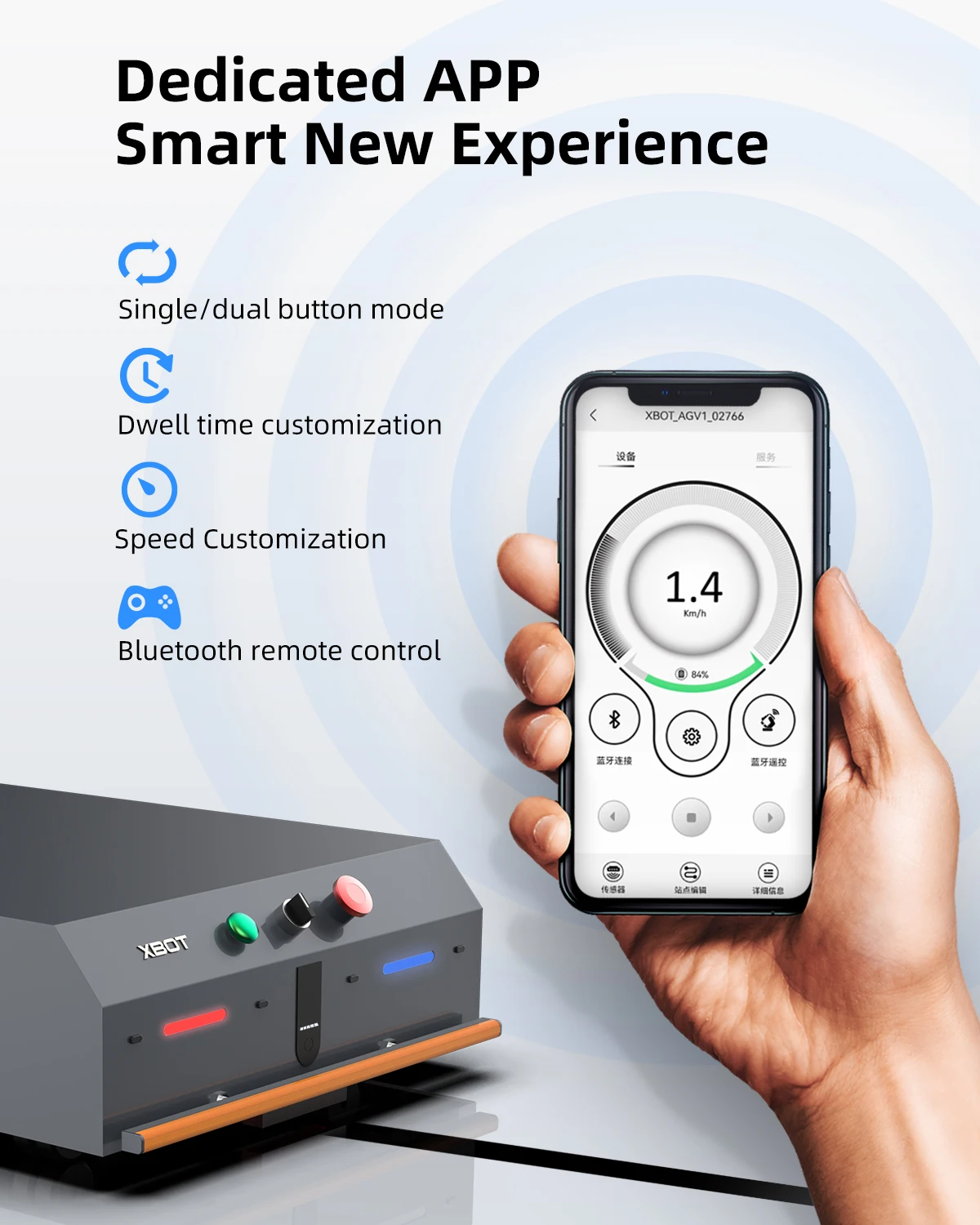 0.5-4km/h (adjustable within mobile app)