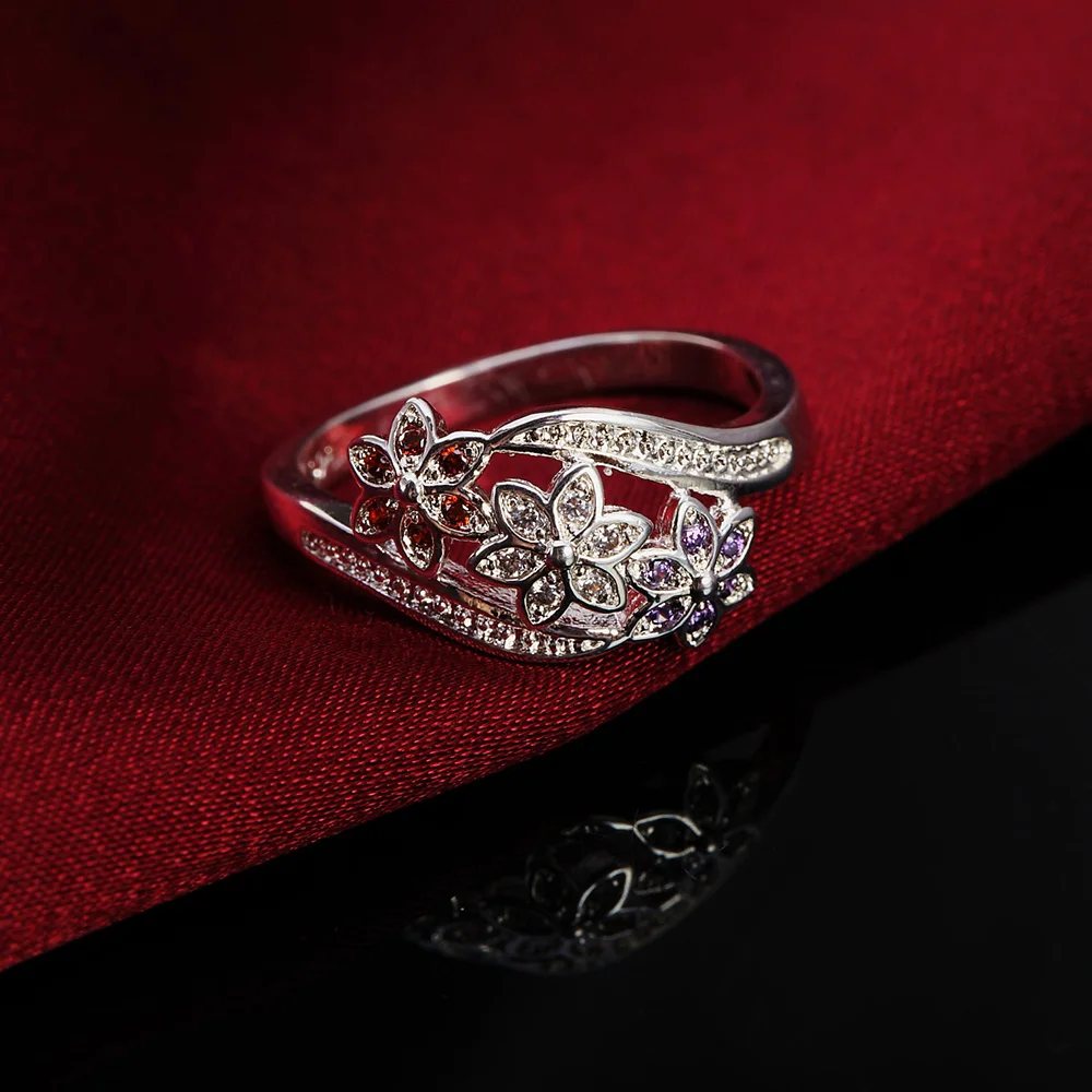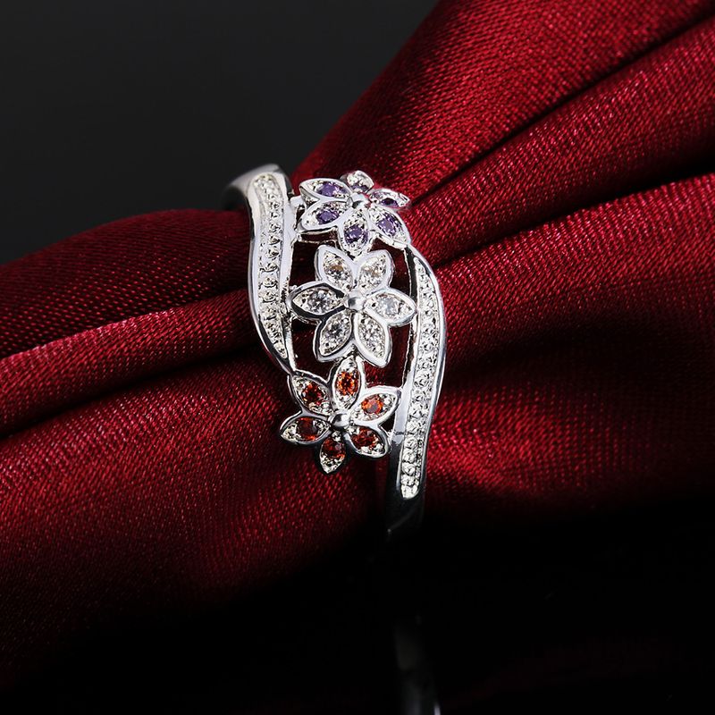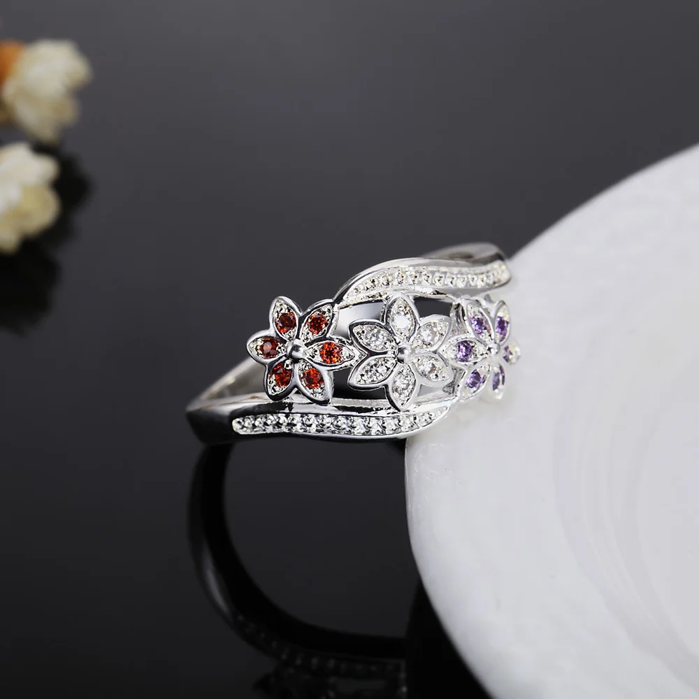 Popular Brands 925 Sterling Silver Crystal Flower Rings For Women Size Adjustable Charms Party Wedding Accessories Gift Jewelry
