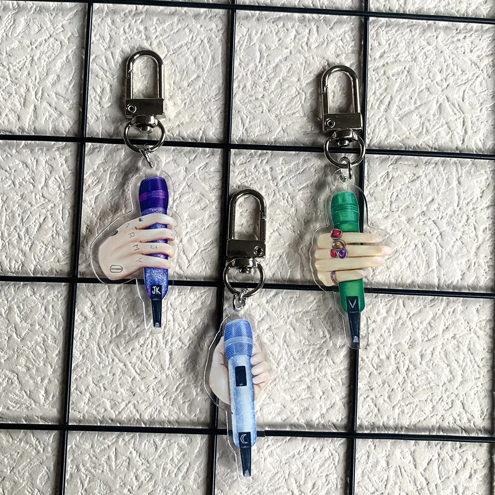 Popular Korean boy band microphone with acrylic keychain around Kim Tae Hyung Jung Kook keychain phone case pendant fans gifts