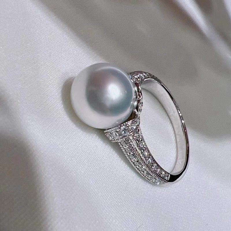 Popular Pearl Light Luxury Ring For Women White Gold Color No 8