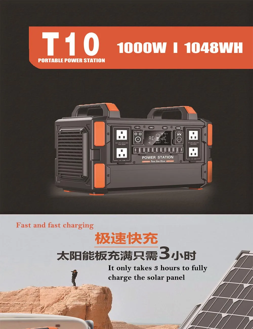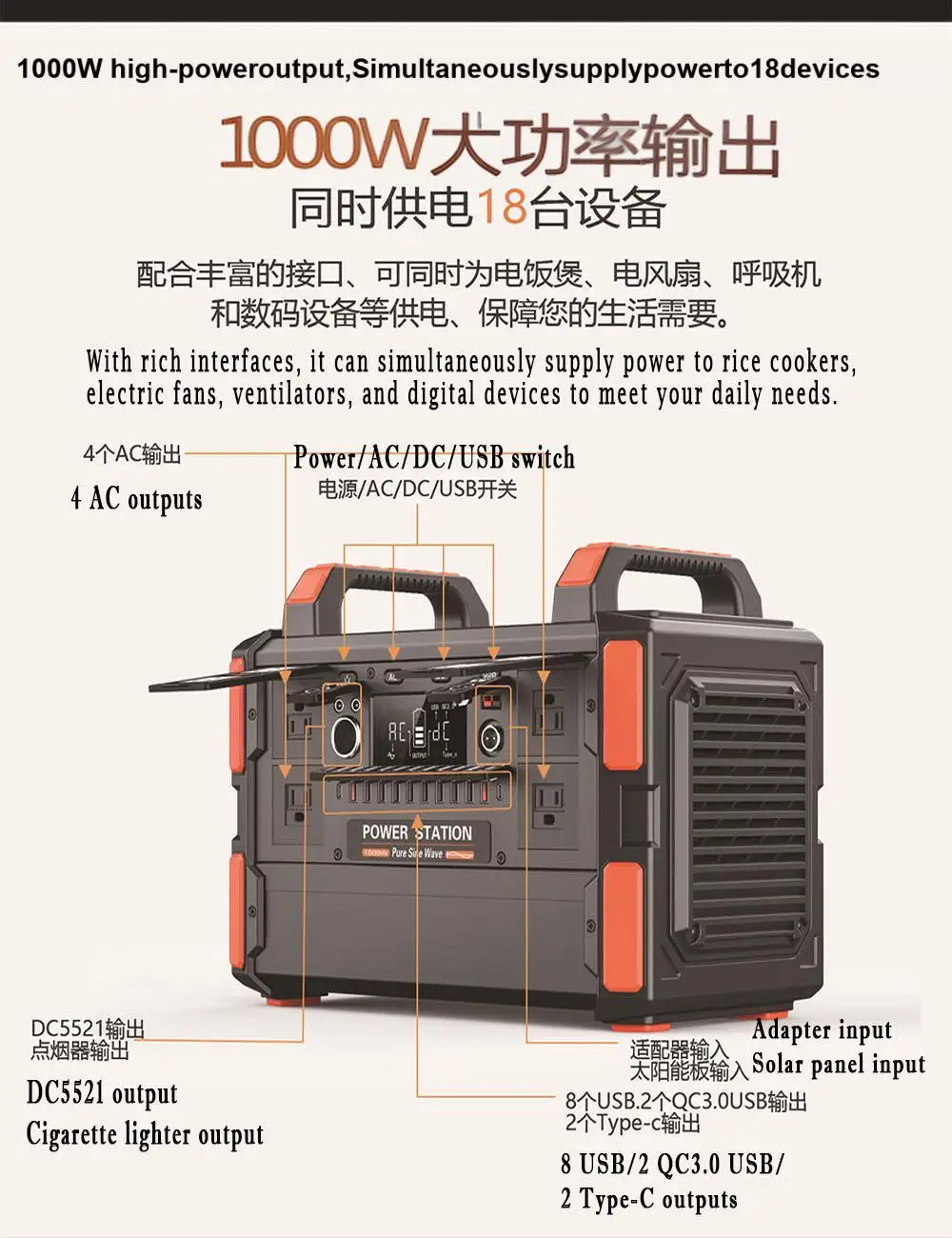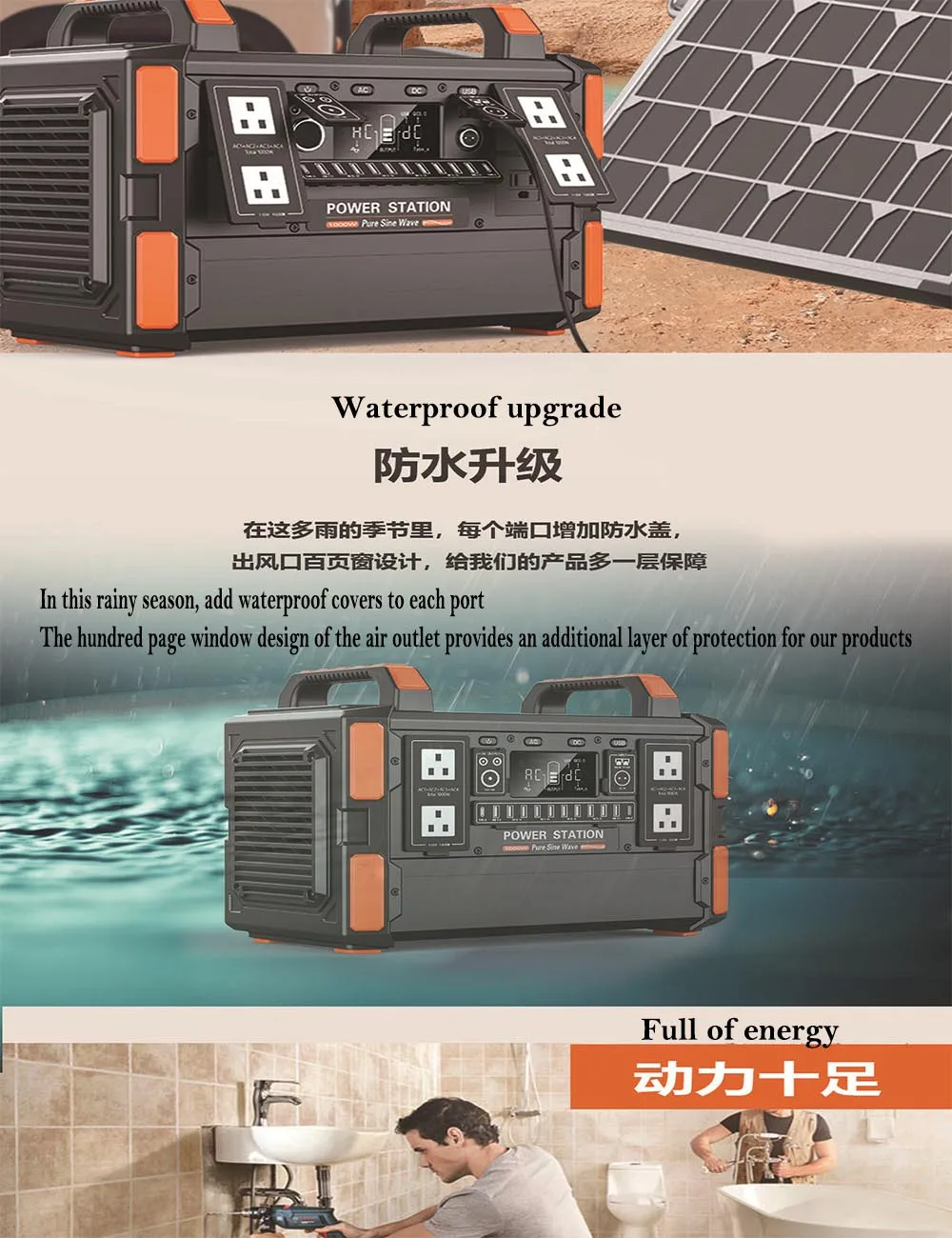 Portable 1200W 2400W 3KW Power Station Large Capacity Emergency Fast Charging Backup LiFePO4 Battery Off-Grid Solar Home Energy