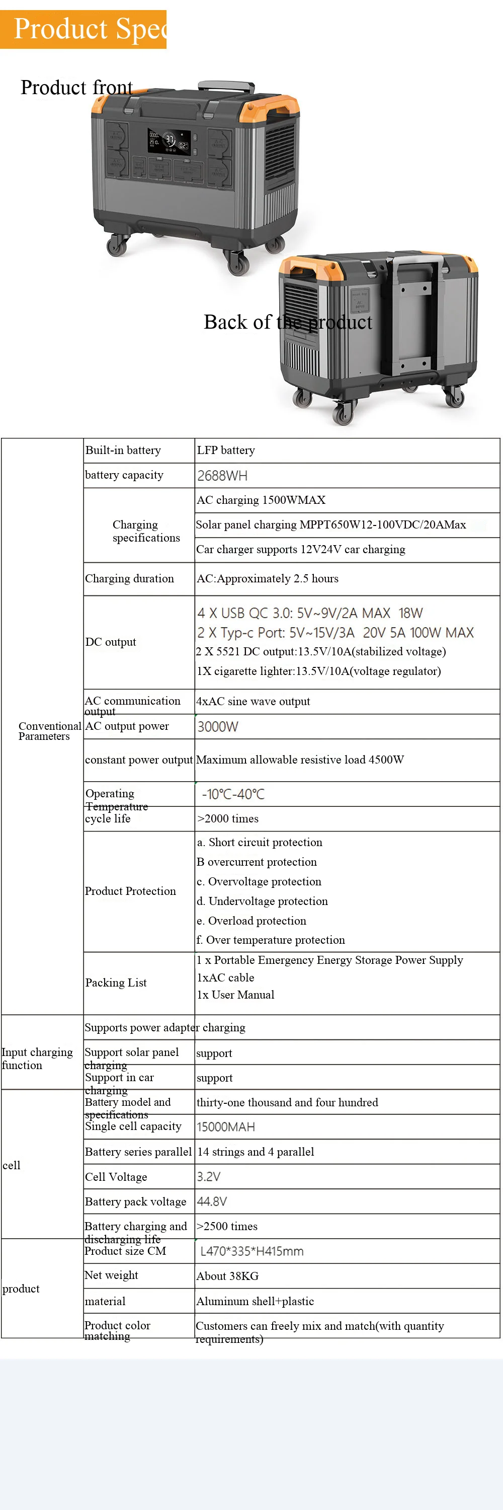 With a powerful 1200W/2400W/3KW output, this solar generator ensures quick and efficient charging for your devices during emergencies.