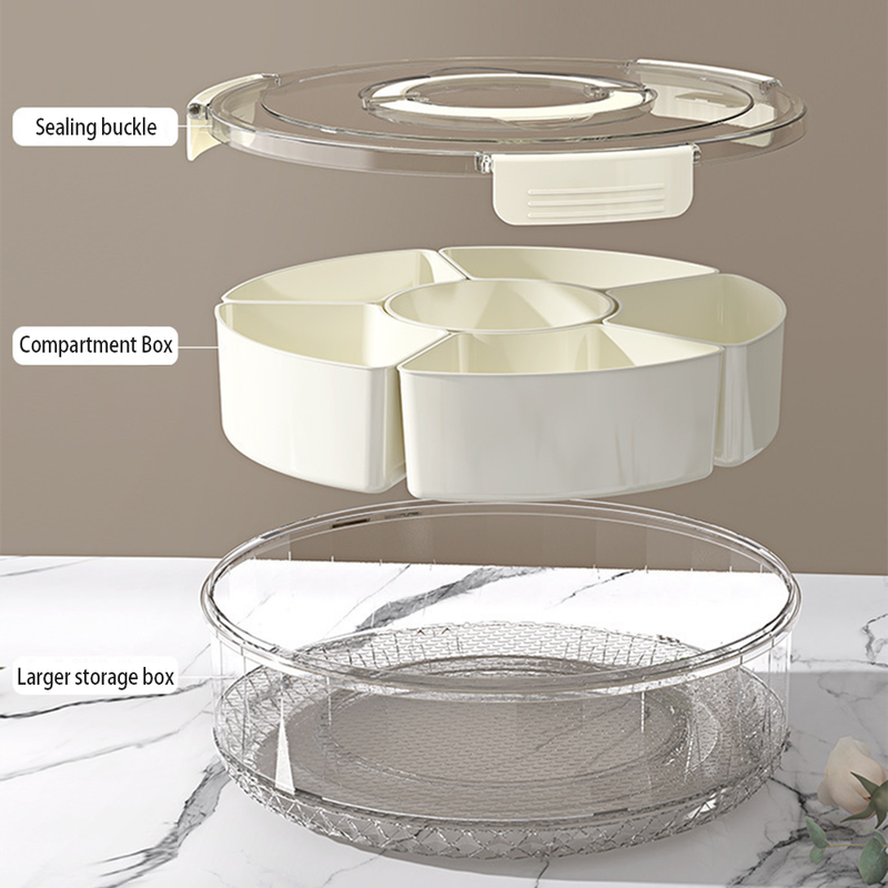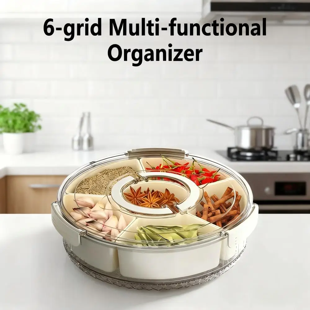 Portable 6 Grids Divided Serving Tray Storage Box Kitchen Sub-format Seasoning Separator Box Fresh-keeping Snack Fruits Food Box