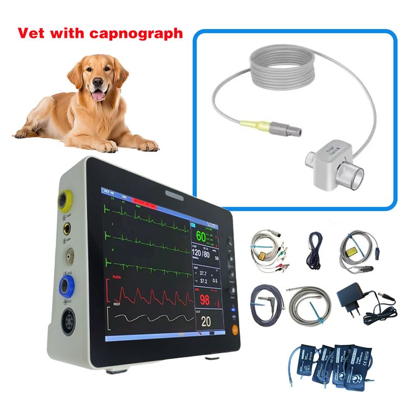 Animal monitor Portable 6-parameter 8-inch screen ,optional for carbon dioxide monitor ETCO2 LCD, animal specific monitor