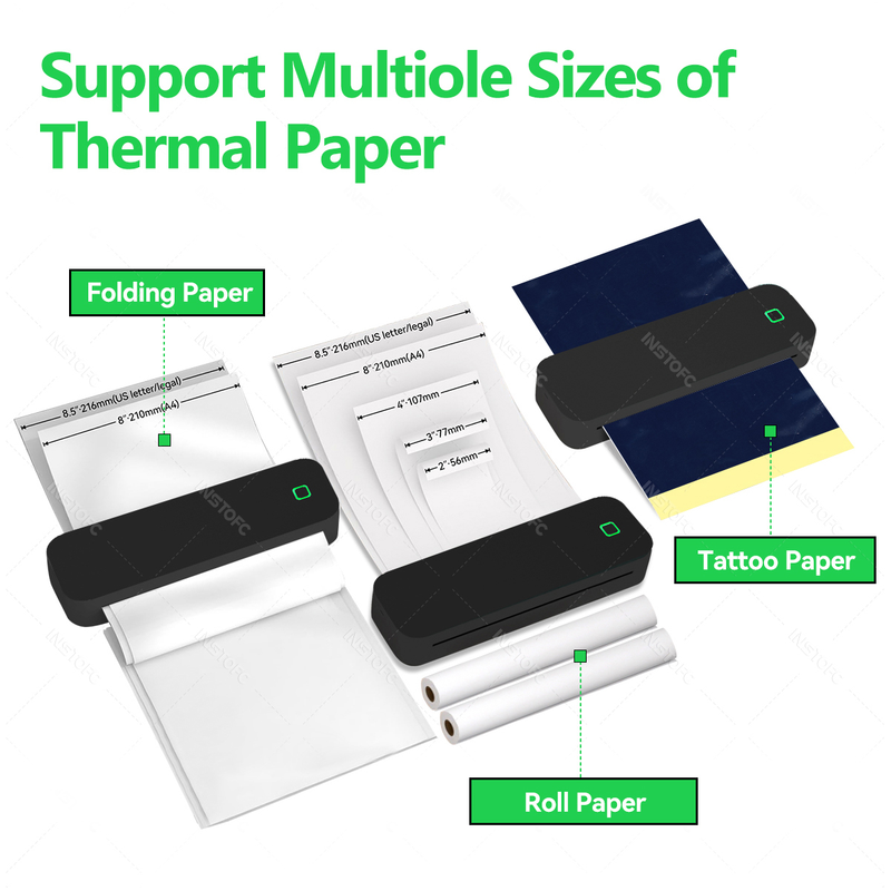 1. Support Multiple Sizes of Thermal Paper: Folding Paper、Roll Paper、Tattoo Paper.