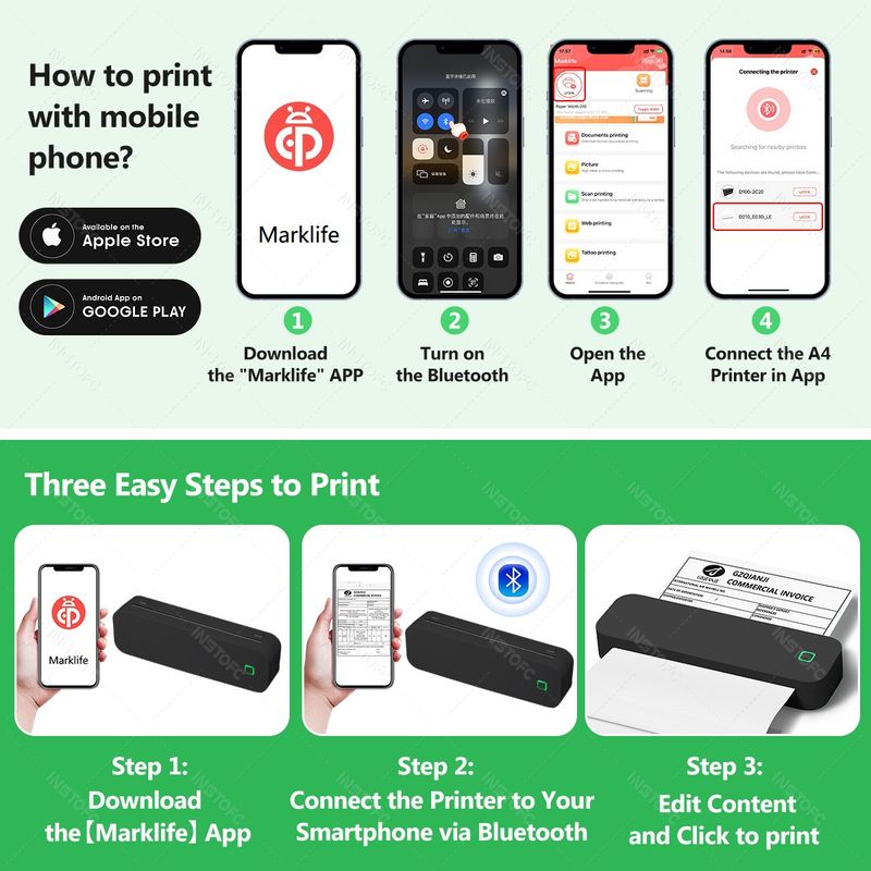 2. Portable A4 Printer, ideal for printing PDF files, test paper, webpage, contract, photo, picture, etc., an excellent assistant for study and office work.