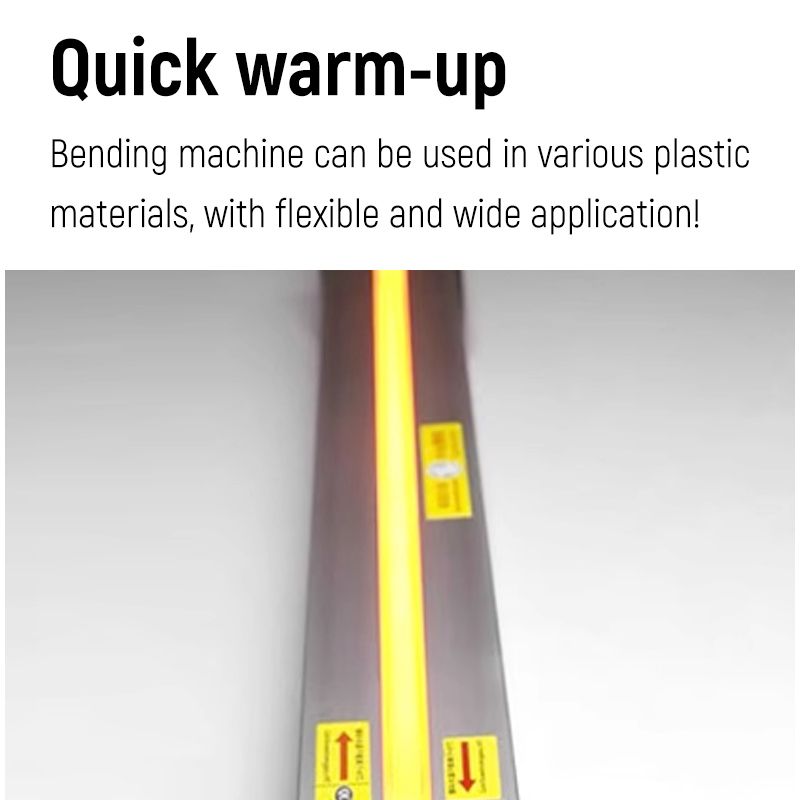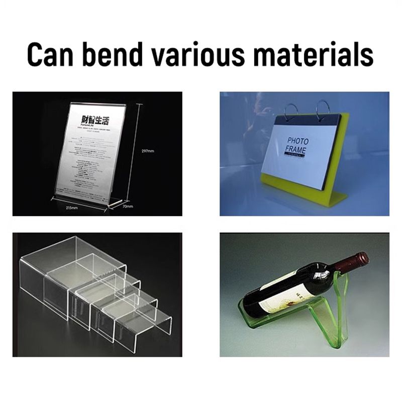 Acrylic heat bending machines are increasingly widely used in decoration projects, sign making, square column wrapping, door and window edges, display cabinets, fish tank wrapping, supermarket shelves, curtain walls, large light boxes and other acrylic or plastic board bending. At present, the common heat bending machines on the market are mostly multi-functional and large in size, and the heat bending process often needs to be processed on-site according to the actual shape at the construction site. It is really troublesome to move a large heat bending machine to the construction site, so we need a machine that is easy to carry and easy to operate. At the same time, it also solves the problem for users who want to buy an acrylic heat bending machine but don’t want to occupy too much space in the store.