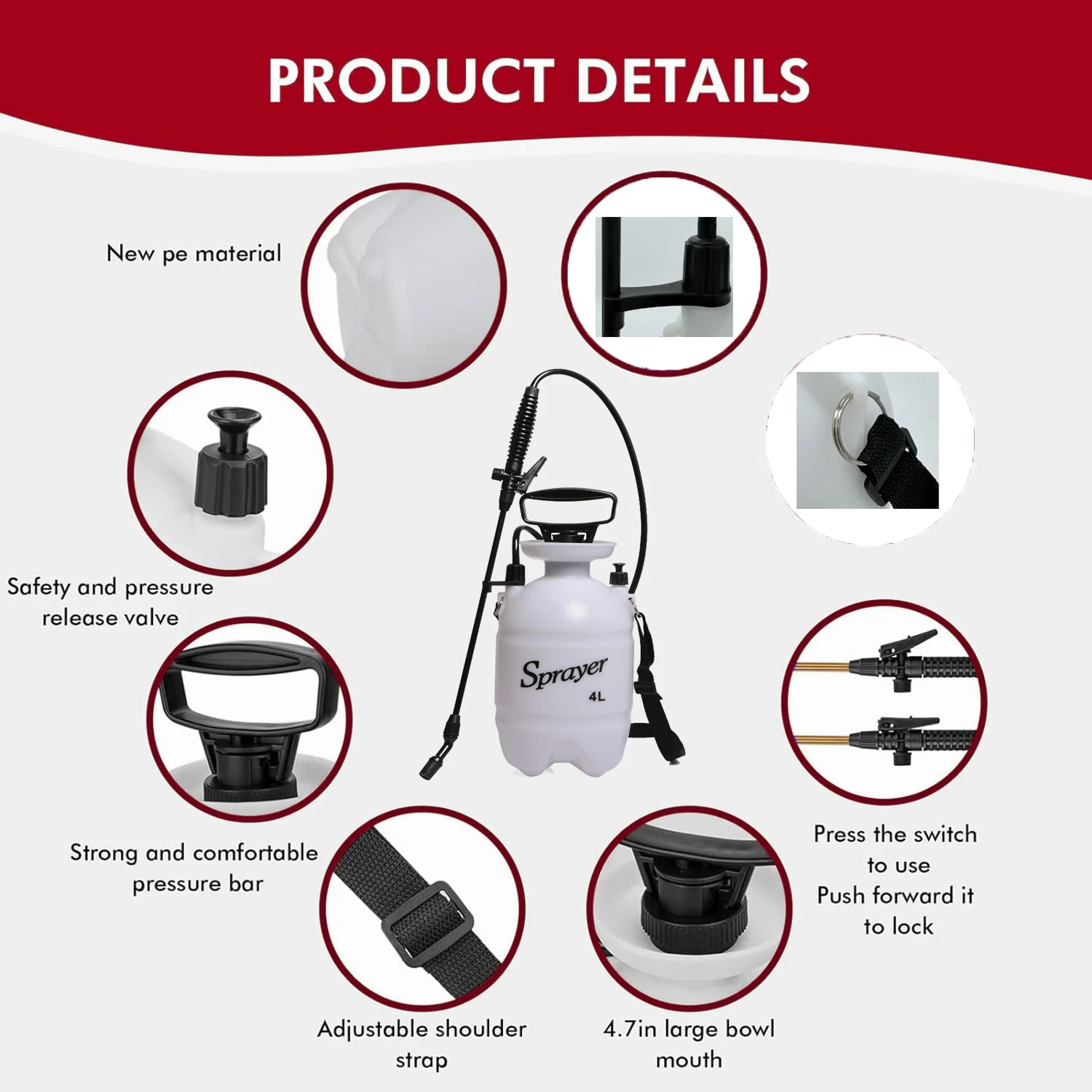 Portable & Multi-Purpose Pressure Sprayer: This hand sprayer can be used for cleaning cars, irrigation plants, pet bathing, home cleaning.