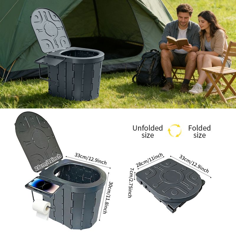 【Compact & Portble】 With widened side panels, the folding camping toilet is much easier to set up or fold down in seconds. The collapsible design allows you to pack it into the torage bag attached, you can freely carry it during camping, road trip, etc without taking place.
