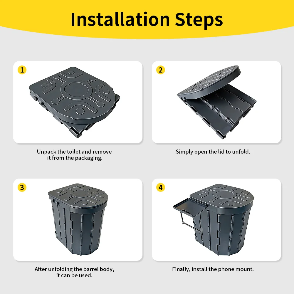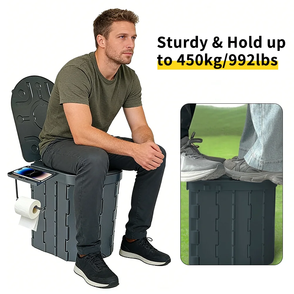 【Bear Up to 450kg】 Made of premium ABS plastic and assembled with wider and taller panels, our camping toilet bucket is sturdy and stable enough to hold up to 450kg, no need to worry about falling apart or breaking.