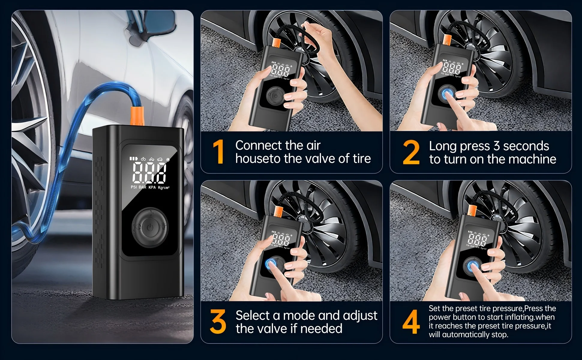 Versatile Use: Whether it's your car, motorcycle, bicycle, or sports equipment, this air pump is designed to inflate a variety of items, making it a versatile addition to your toolkit.
