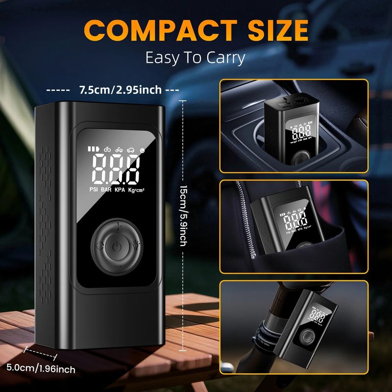 Compact and Portable Design: The mini air compressor's compact size makes it easy to carry around, ensuring you're always prepared for a quick inflation on the go.