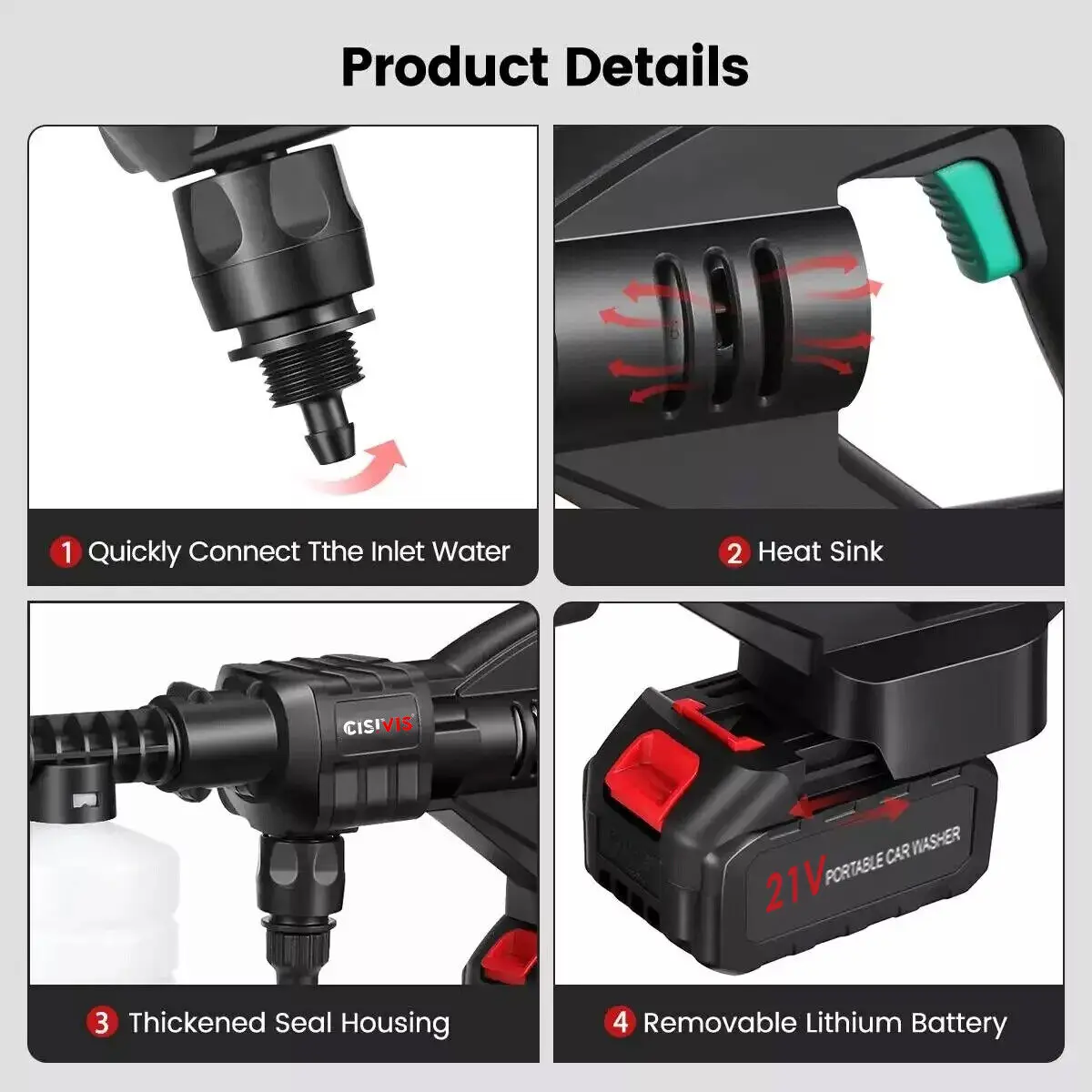 1. Wireless car washer, no need to plug in when washing the car, convenient and fast.