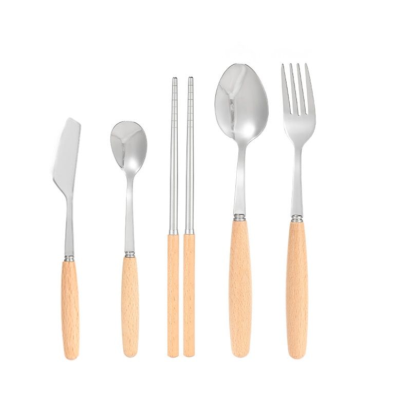 Color: Buggy Bag Excluding Tableware, 5-piece Wooden Handle Tableware Set, Single Wooden Handle Chopsticks, Single Wooden Handle Butter Knife, Single Wooden Handle Coffee Spoon, Single Wooden Handle 2 Fork, Single Wooden Handle 2 Tip Spoon, Single Wooden Handle Knife