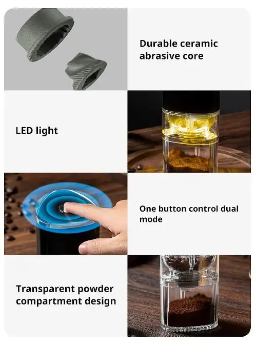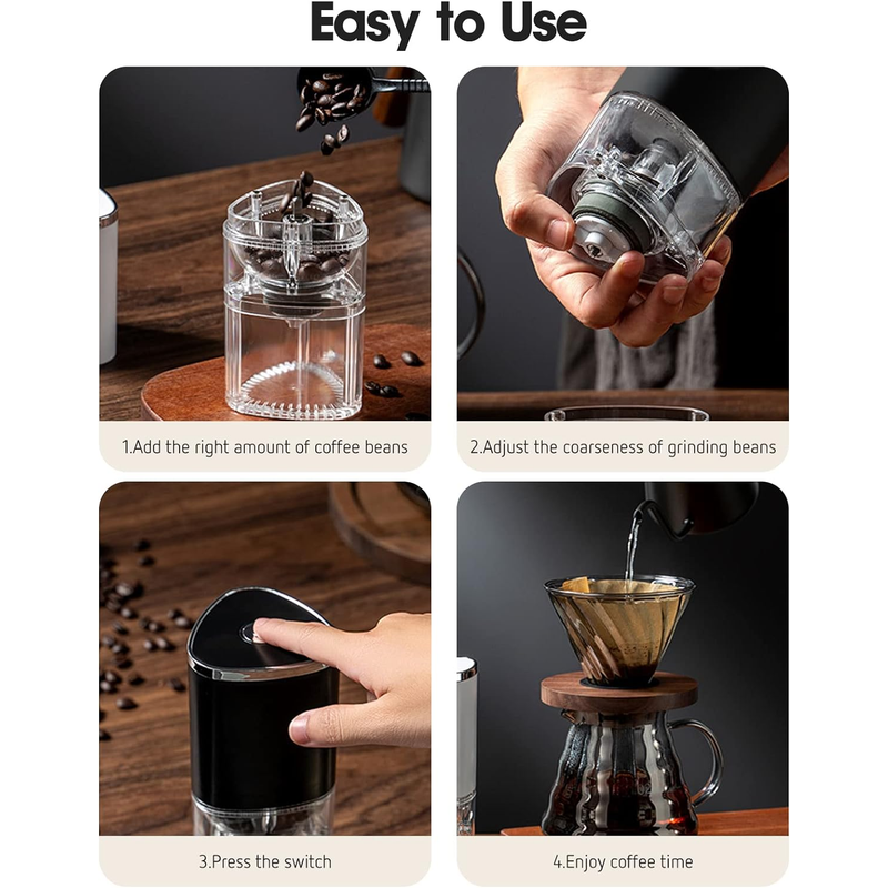 - USB Charging :Charge your coffee grinder quickly and easily with a USB cable, making it perfect for those on-the-go.