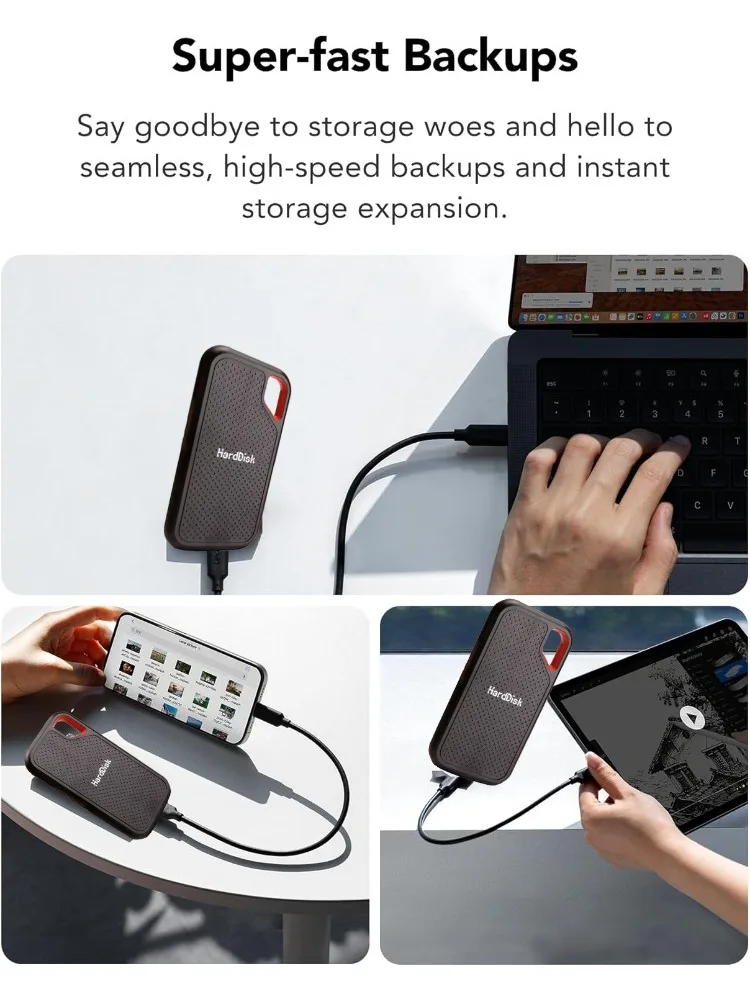 Balancing durability and mobility, fast transfer of large files, fully compatible with mobile phones and computers, easily meeting the needs of multiple scenarios such as office backup and audio and video storage!