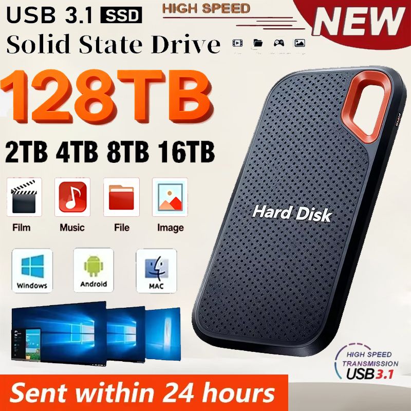 Portable external hard drive 4TB large capacity solid-state drive 16TB USB 3.1 high-speed interface suitable for PC/Mac/laptop