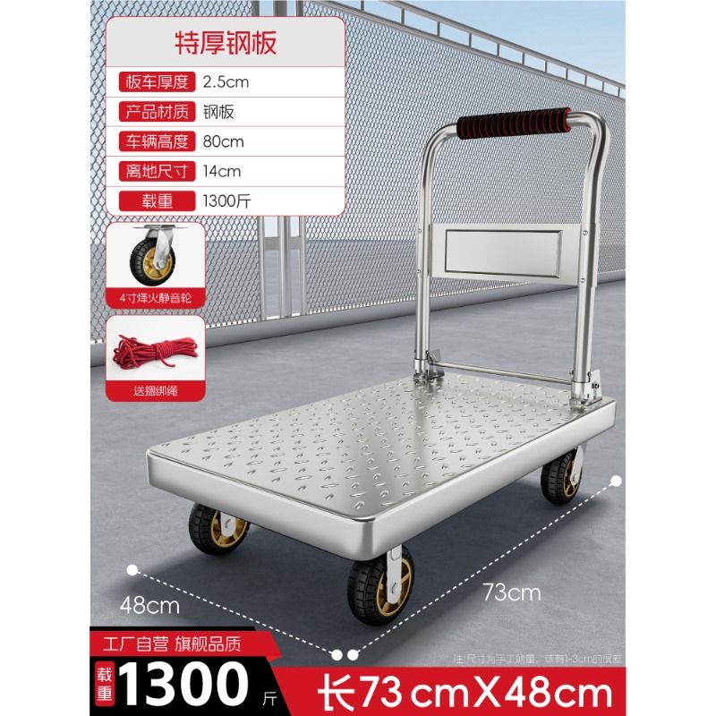 Portable folding steel plate trolley, cargo trolley, transporter, household flatbed trailer