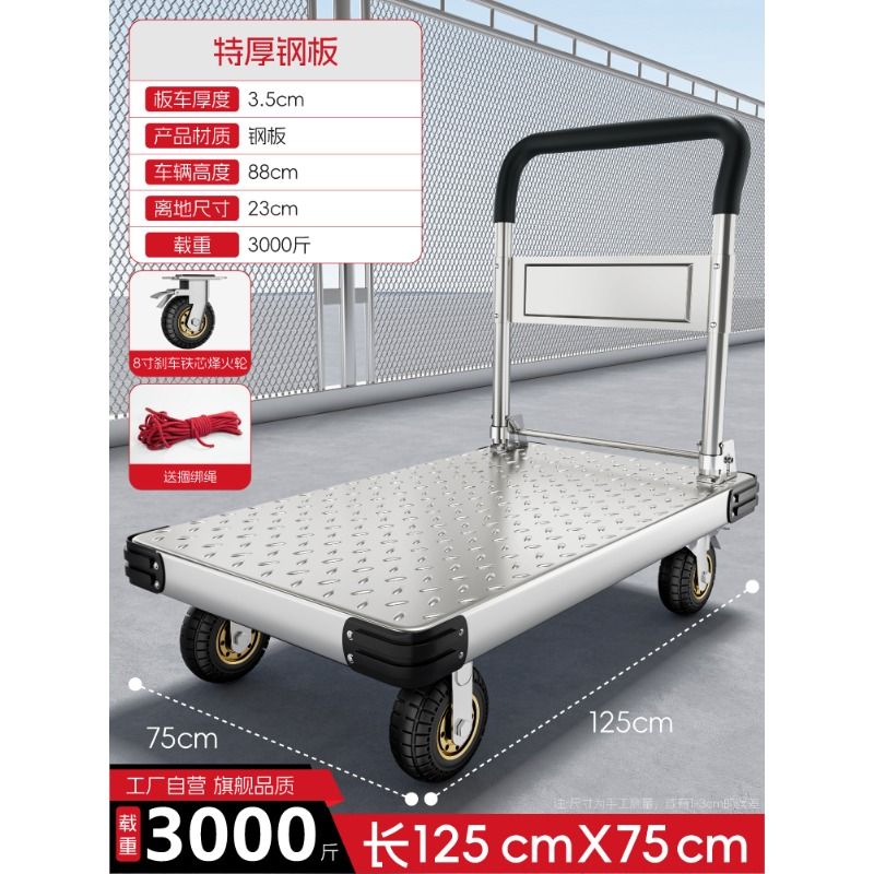 Portable folding steel plate trolley, cargo trolley, transporter, household flatbed trailer