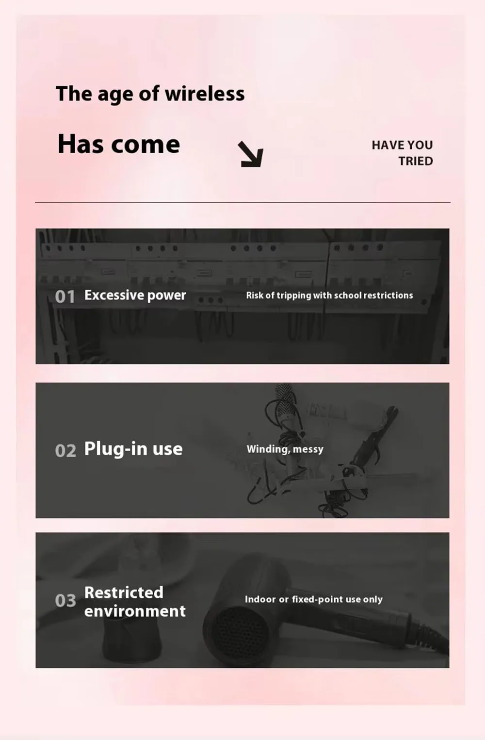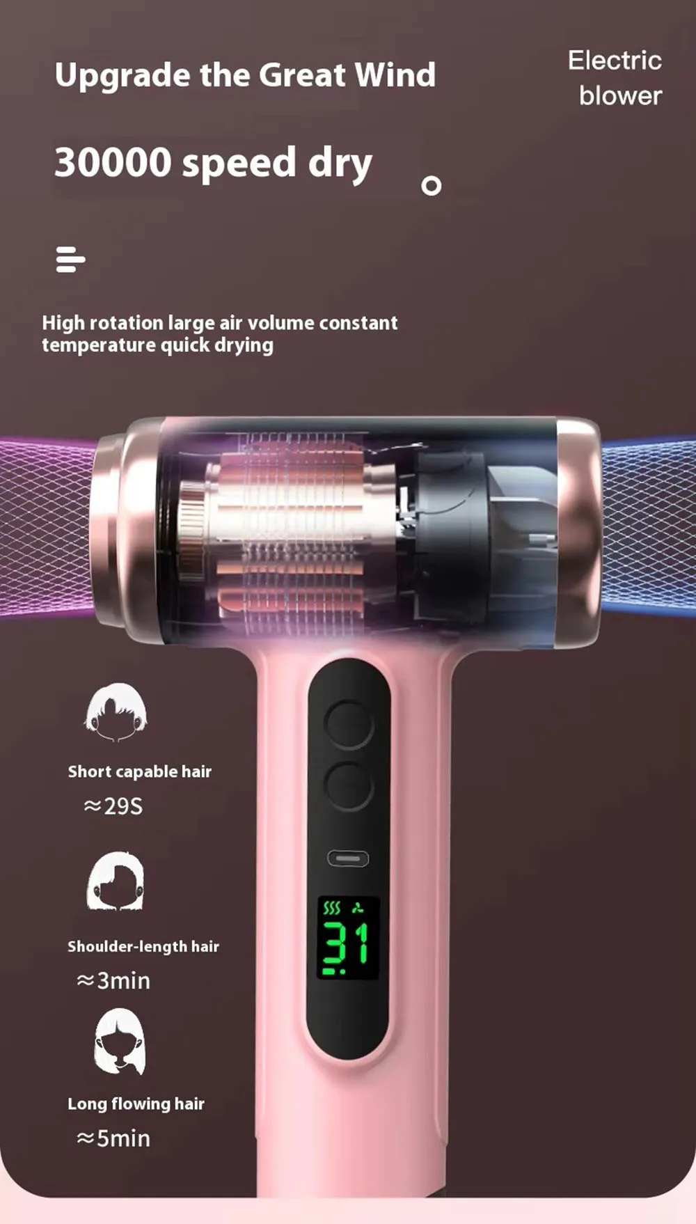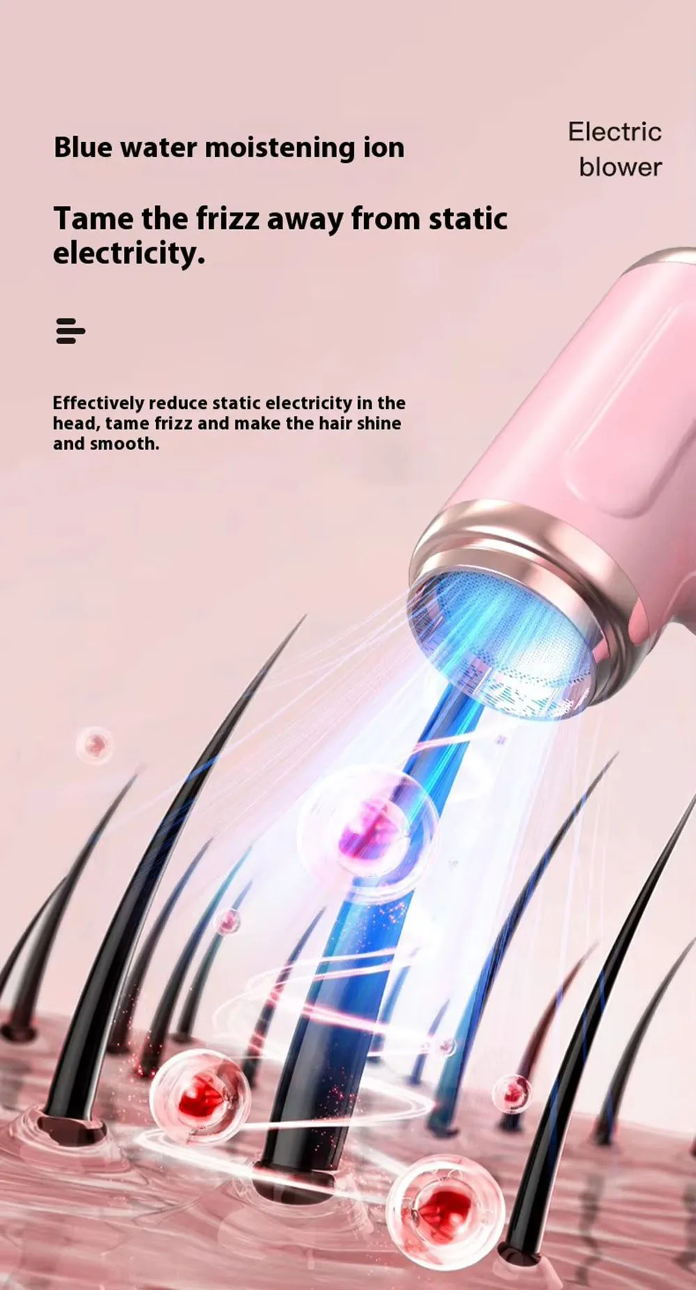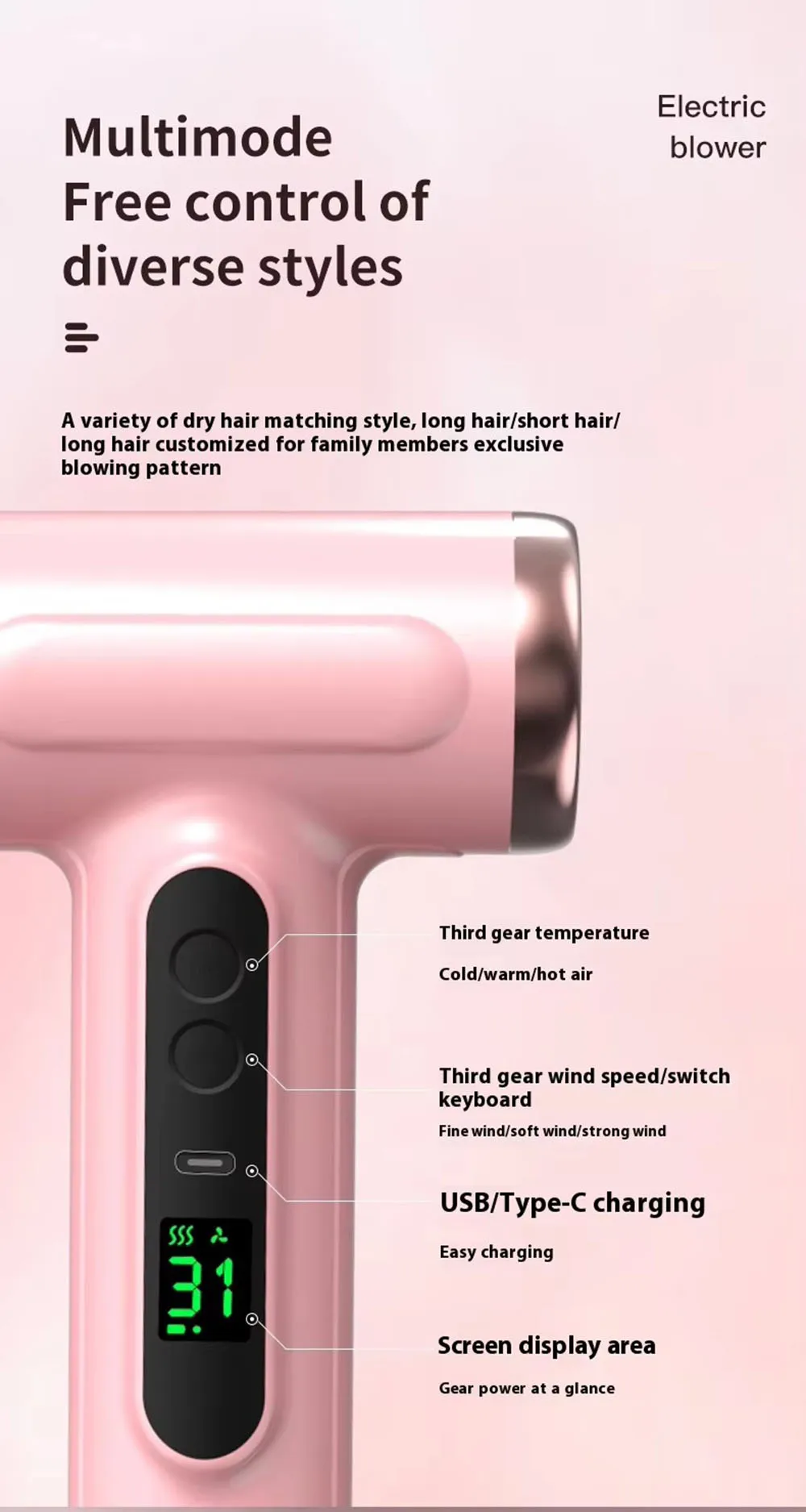 Portable Hair Dryer USB Charging Hot and Cold Air Hair Dryer Cordless Lightweight with Nozzle for Travel Student Dormitory