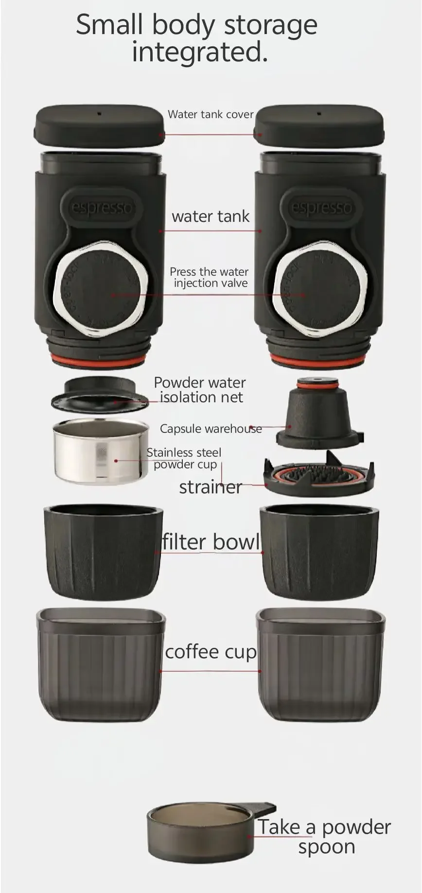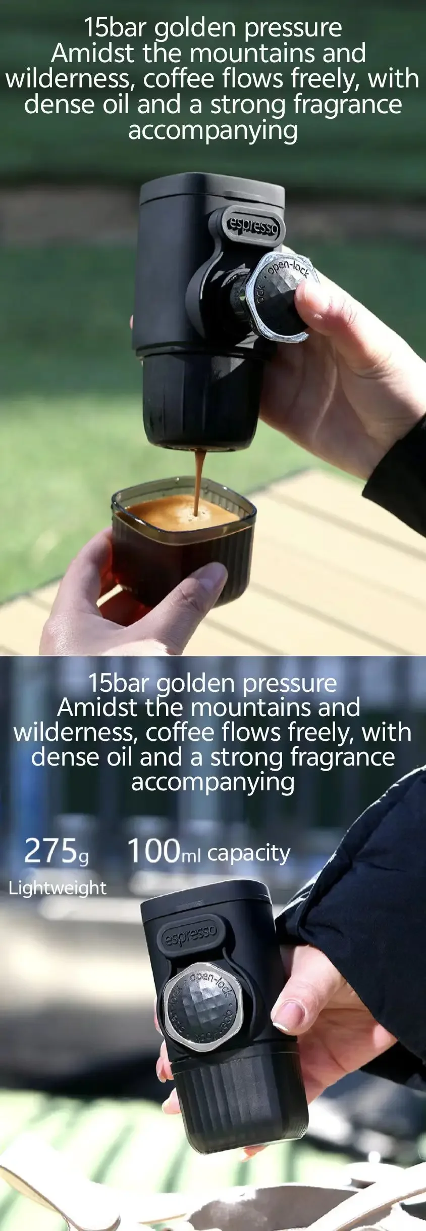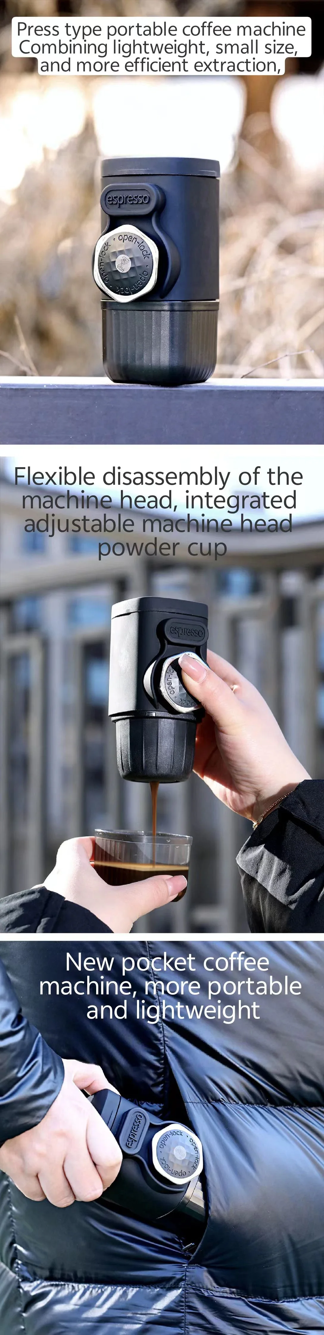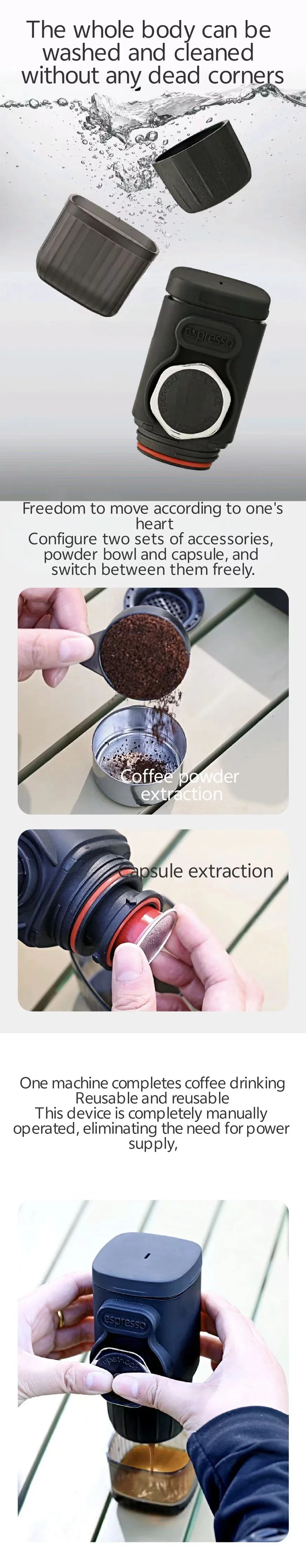 Portable hand pressed coffee machine, Italian capsule coffee powder, household travel, outdoor small espresso machine