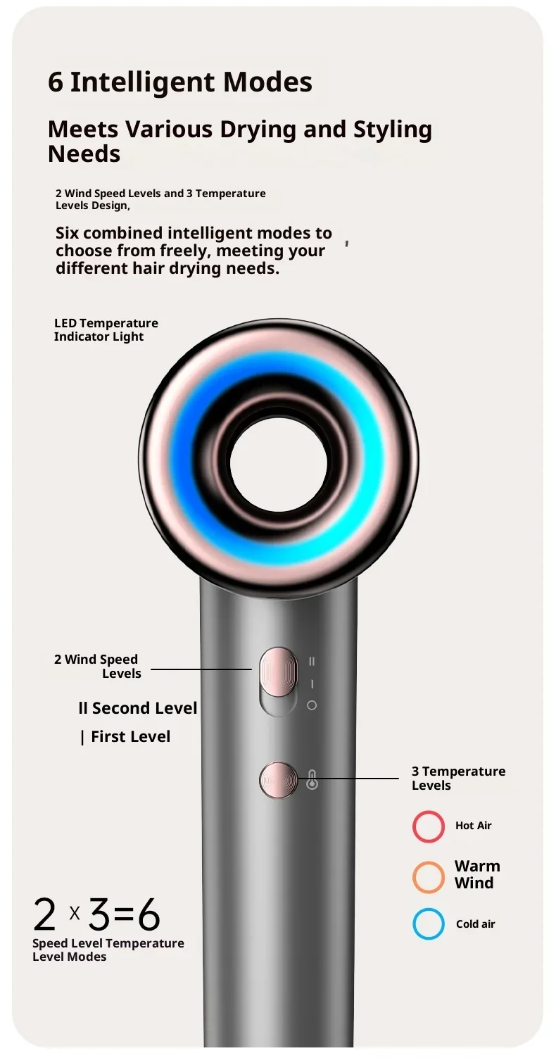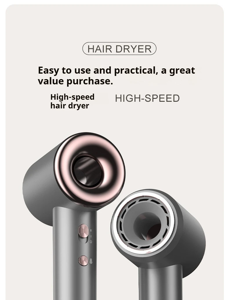 Portable High-Speed Negative Ion Hair Dryer for Home Use Bladeless Fast Drying Quiet Lightweight Hair Care 1500W BLDC Motor