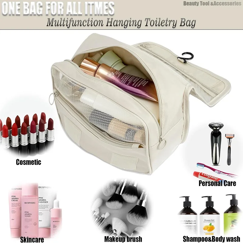 Portable Hook Cosmetic Cases Bathroom Multi Functional Travel Waterproof Wear Resistant Multi Layer Storage Capacity Makeup Bag