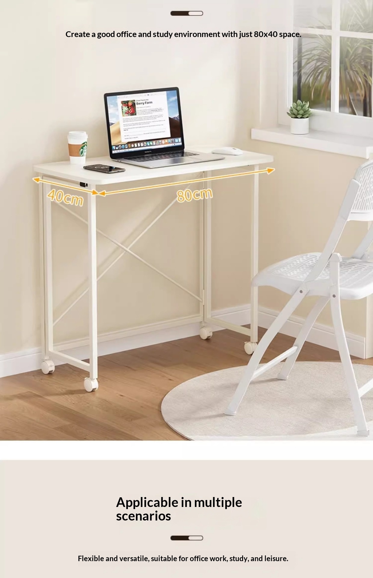 Portable Household Portable Minimalist Folding Desk White 60X40CM